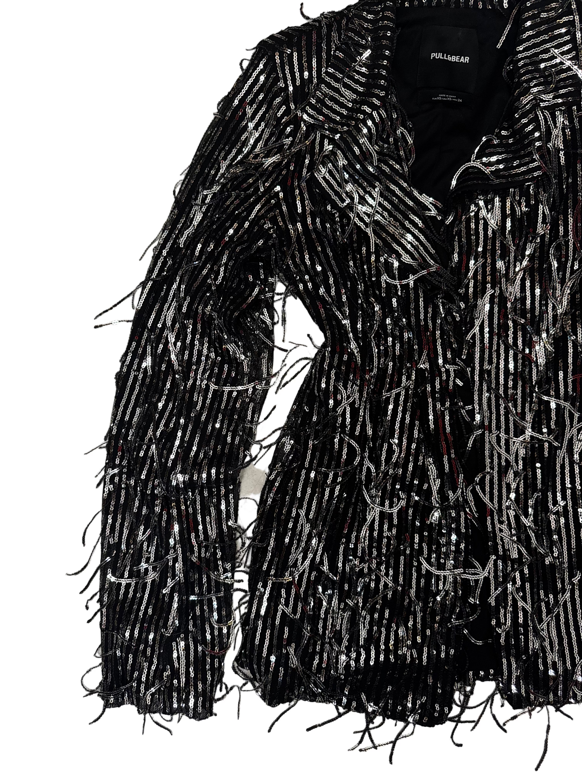 Pull & Bear nightlife blazer with sequin fringe. Open cardigan style with a collar.